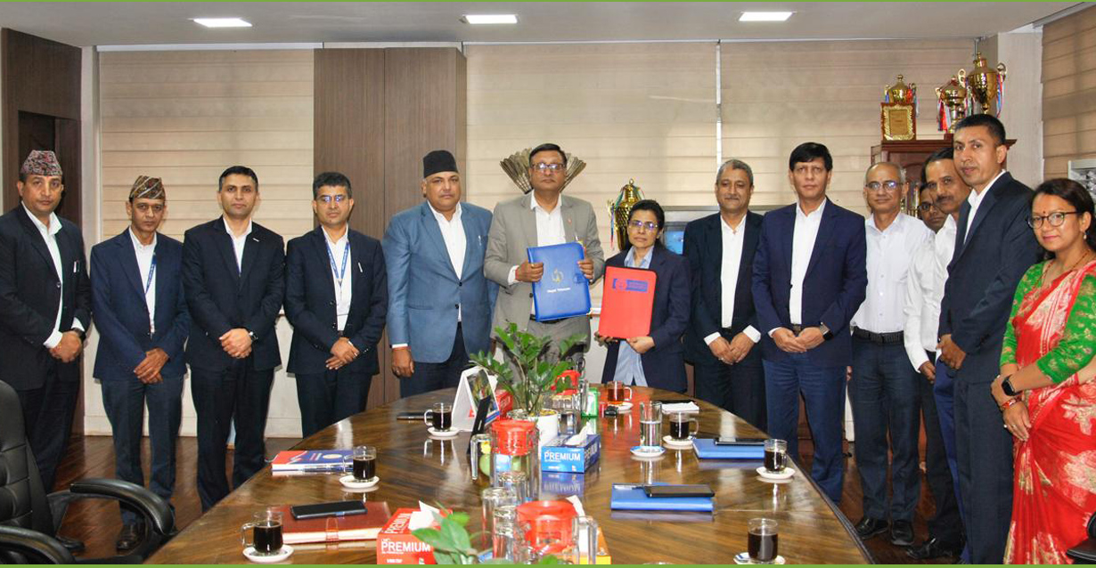 काठमाडौं– राष्ट्रिय वाणिज्य बैंक लिमिटेड र नेपाल दरसञ्चार कम्पनी लिमिटेड (नेपाल टेलिकम)बीच निवृत्तिभरण खाता, तलबी बचत खाता तथा पेसाकर्मी सरल कर्जा सञ्चालनसम्बन्धी सम्झौतापत्रमा हस्ताक्षर भएको छ । नेपाल टेलिकमको प्रधान कार्यालयमा आज आयोजित एक कार्यक्रमकाबीच उक्त सम्झौतापत्रमा हस्ताक्षर भएको हो ।