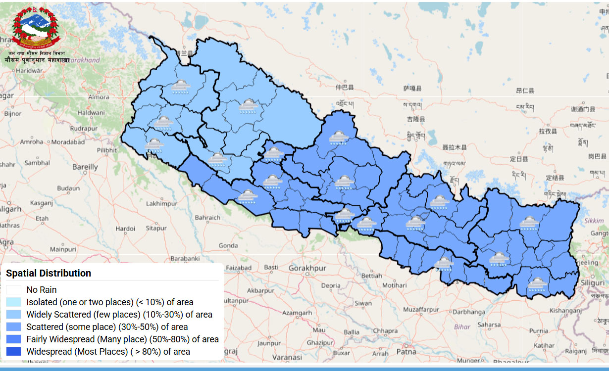 आज मनसुनी वायु सक्रिय रहँदा देशभर वर्षाको सम्भावना